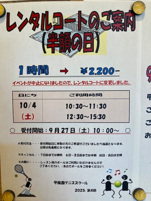 甲風園テニススクールをお気軽に体験出来るレッスンです。