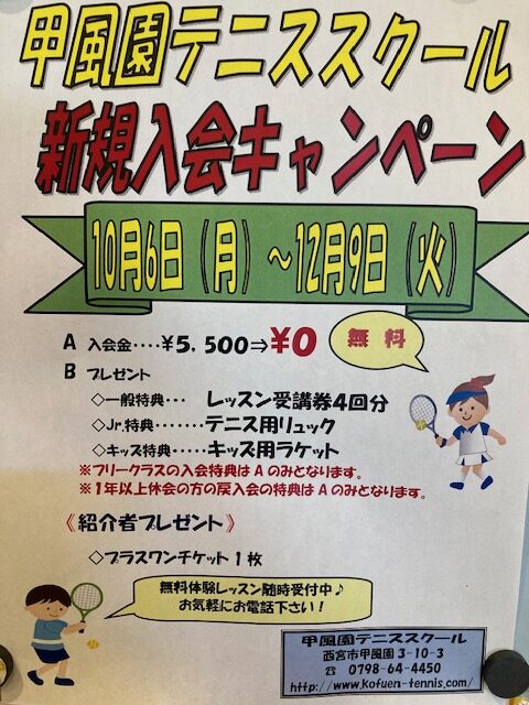 甲風園テニススクールをお気軽に体験出来るレッスンです。