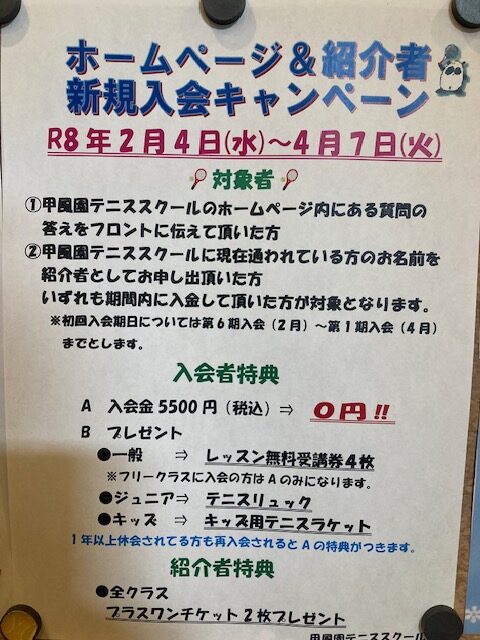 新規入会キャンペーンのお知らせ(質問あり)