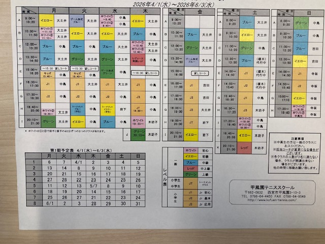 2026年1期クラス表